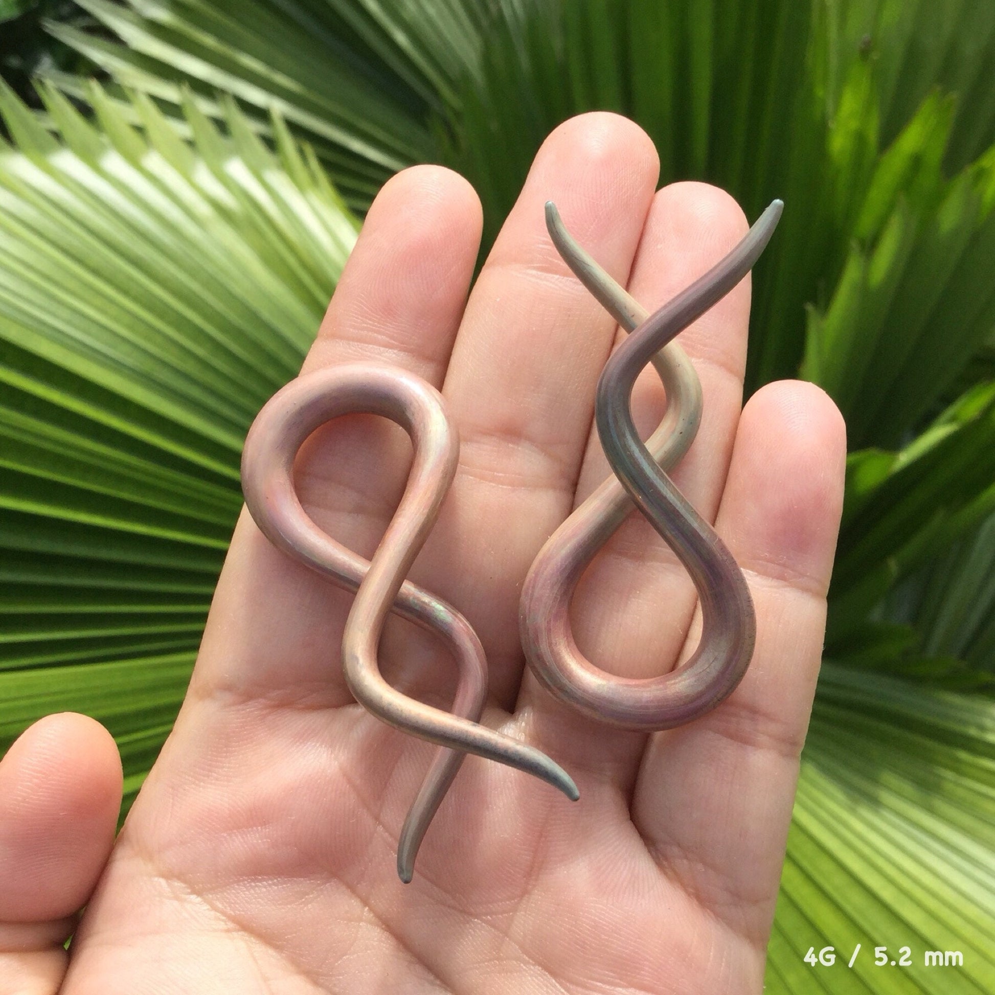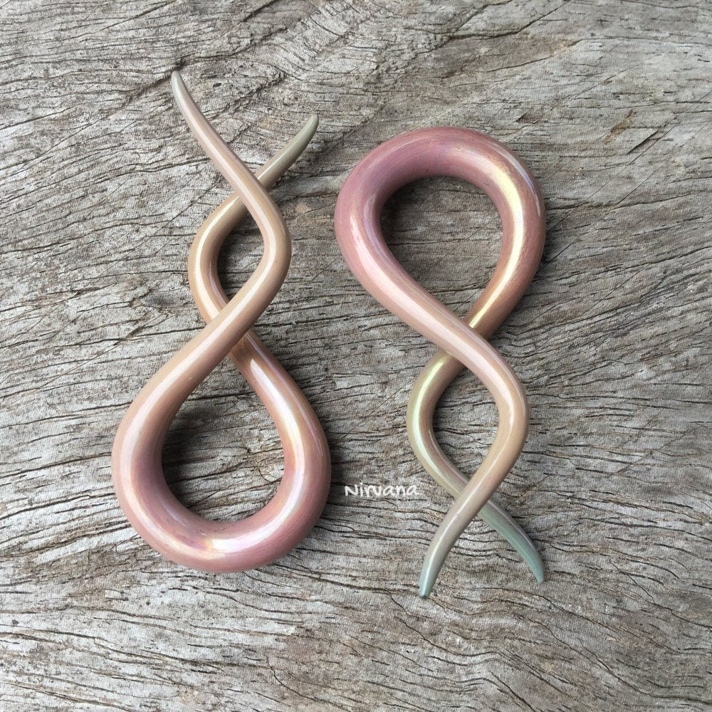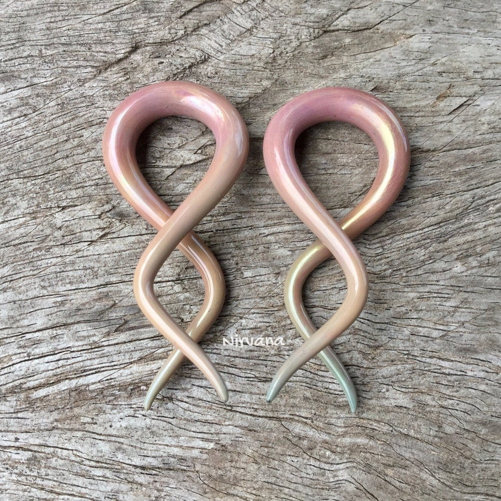 And of course if the photo listings are usually for a larger size please also understand that a smaller size ordered will look different too. This is important as you can't expect a 10g (2.5 mm) spirals to show as much color, design & pattern as a 0g (8 mm) or even 00g (10 mm) spirals. As 10g (2.5 mm) is only the size of about a strand of spaghetti pasta. Especially with the Dichroic colors or multi color requests they just won't work well in very small sizes as there's not enough space to put the colors in or for showing clearly.