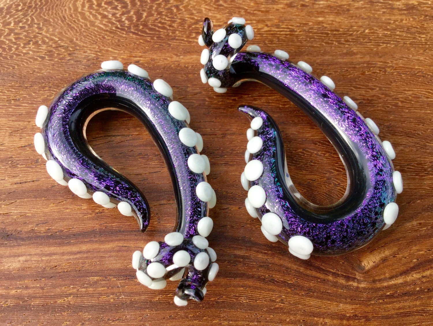 ITEM: This sale is for 1 pair (2 pieces) of hand made pyrex Aquatic Rainbow Dichroic Octopus Ear Shapes.