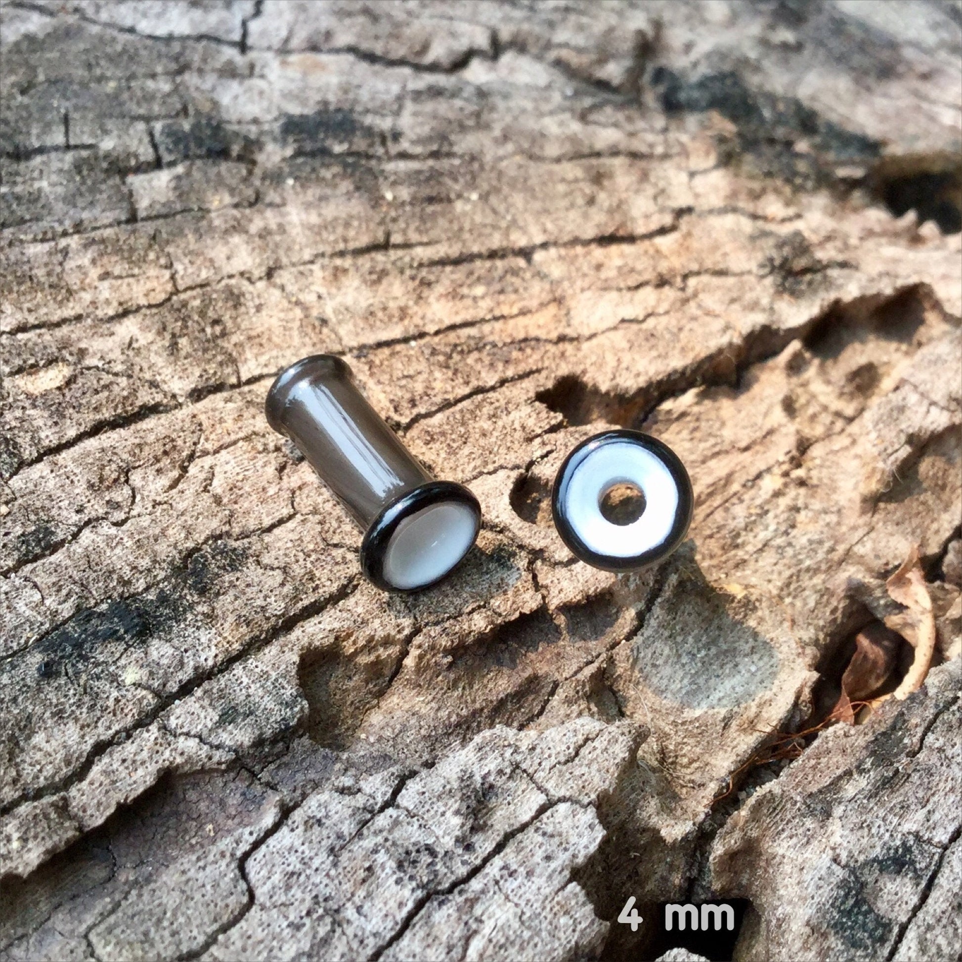 1 Pair (2 Pieces) Black & White 2 Tone Tunnels Glass