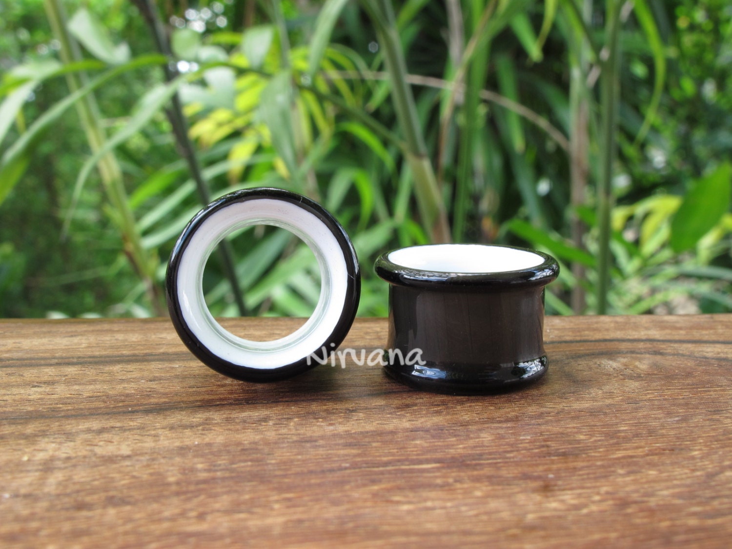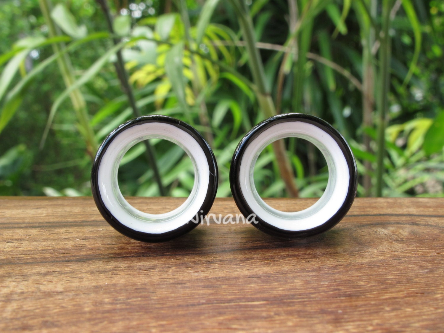 ITEM: 1 pair (2 pieces) of hand made pyrex Black & White 2 Tone Tunnels.