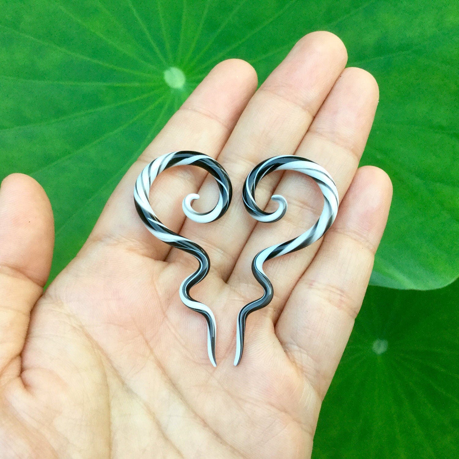 ITEM: This sale is for 1 pair (2 pieces) of hand made pyrex glass Black & White Free Style Spiral Drop Ear Spirals.