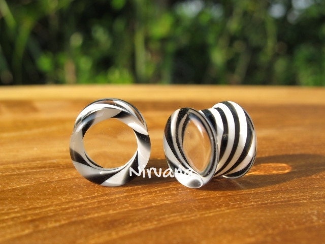ITEM: This sale is for 1 pair (2 pieces) of hand made Pyrex Glass Black & White Illusion Plugs.