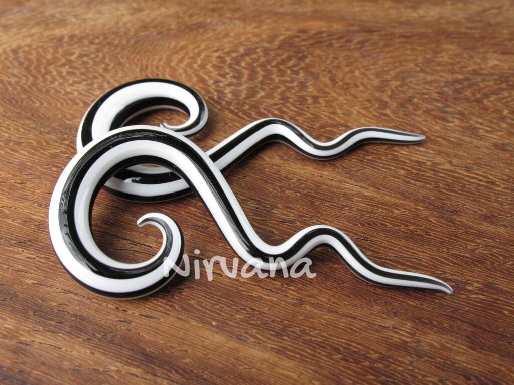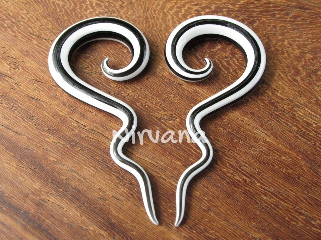 And of course if the photo listings are usually for a larger size please also understand that a smaller size ordered will look different too. This is important as you can't expect a 10g (2.5 mm) spirals to show as much color, design & pattern as a 0g (8 mm) or even 00g (10 mm) spirals. As 10g (2.5 mm) is only the size of about a strand of spaghetti pasta. Especially with the Dichroic colors or multi color requests they just won't work well in very small sizes as there's not enough space to put the colors in or for showing clearly.
