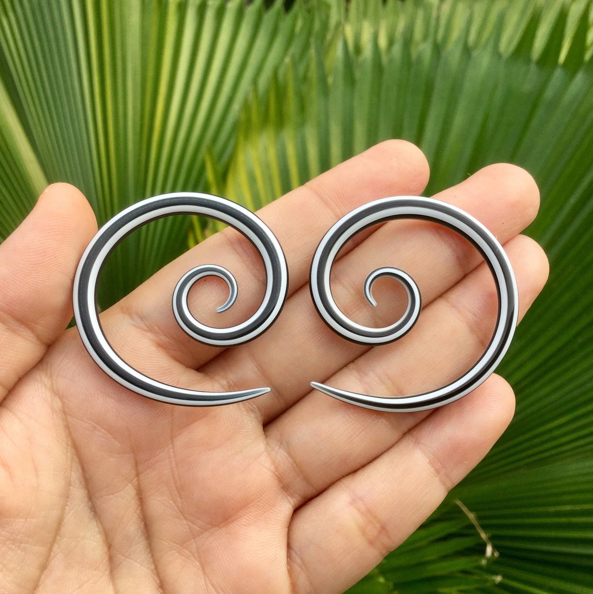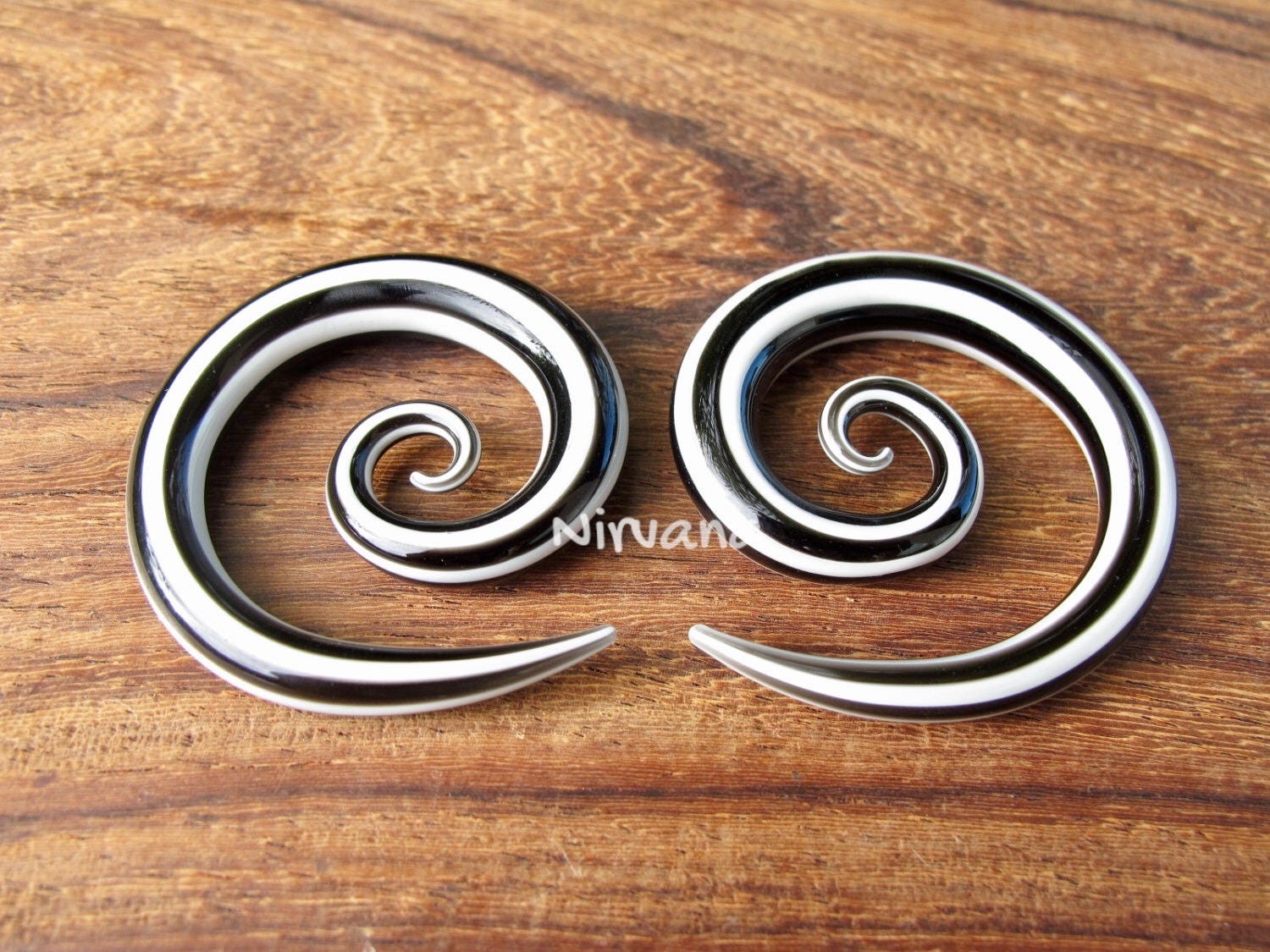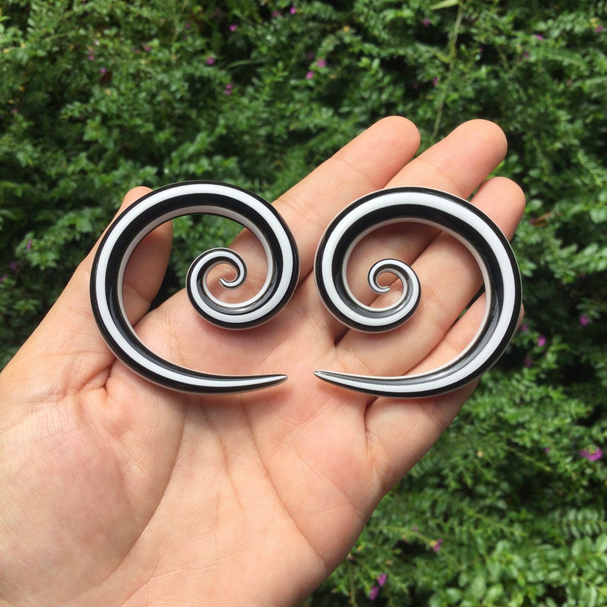 And of course if the photo listings are usually for a larger size please also understand that a smaller size ordered will look different too. This is important as you can't expect a 10g (2.5 mm) spirals to show as much color, design & pattern as a 0g (8 mm) or even 00g (10 mm) spirals. As 10g (2.5 mm) is only the size of about a strand of spaghetti pasta. Especially with the Dichroic colors or multi color requests they just won't work well in very small sizes as there's not enough space to put the colors in or for showing clearly.