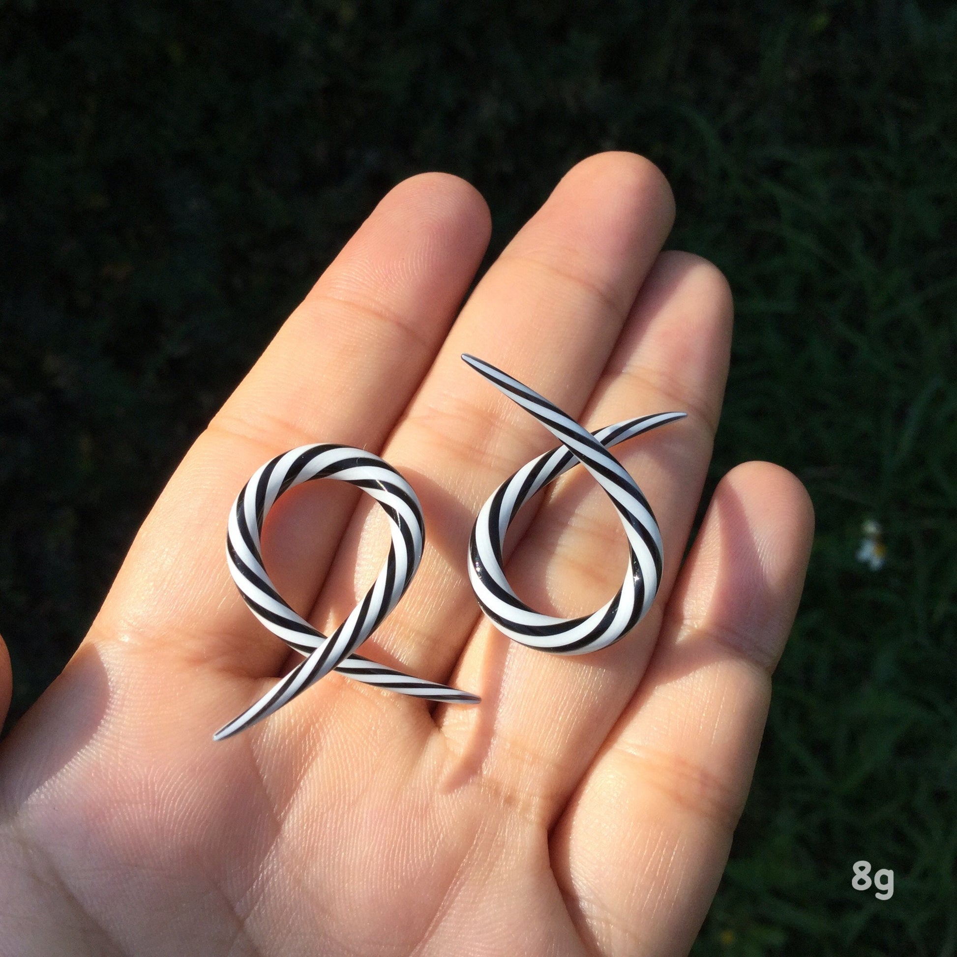 ITEM: This sale is for 1 pair (2 pieces) of our Pyrex hand made Thai Spirals in the Black & White Spirals Single Twists.
