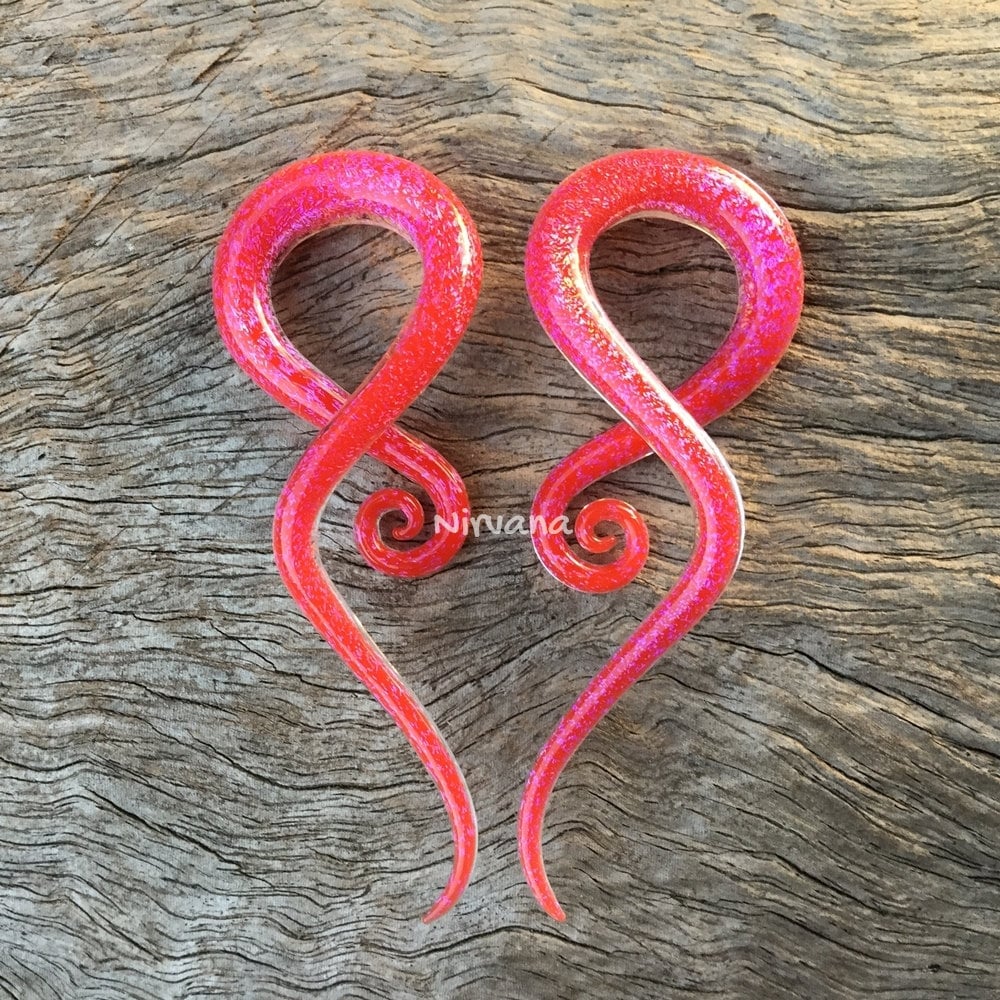 And of course if the photo listings are usually for a larger size please also understand that a smaller size ordered will look different too. This is important as you can't expect a 10g (2.5 mm) spirals to show as much color, design & pattern as a 0g (8 mm) or even 00g (10 mm) spirals. As 10g (2.5 mm) is only the size of about a strand of spaghetti pasta. Especially with the Dichroic colors or multi color requests they just won't work well in very small sizes as there's not enough space to put the colors in or for showing clearly.