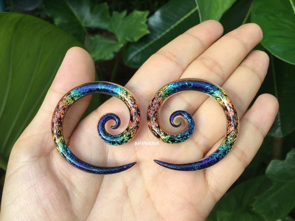 1 Pair (2 Pieces) Dichroic Aquatic Rainbow Super Spiral Gauges