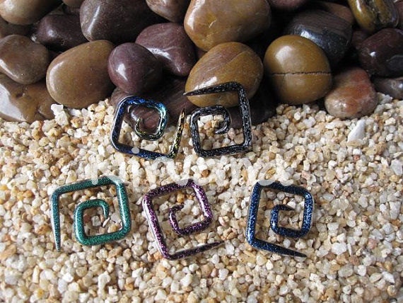 And of course if the photo listings are usually for a larger size please also understand that a smaller size ordered will look different too. This is important as you can't expect a 10g (2.5 mm) spirals to show as much color, design & pattern as a 0g (8 mm) or even 00g (10 mm) spirals. As 10g (2.5 mm) is only the size of about a strand of spaghetti pasta. Especially with the Dichroic colors or multi color requests they just won't work well in very small sizes as there's not enough space to put the colors in or for showing clearly.