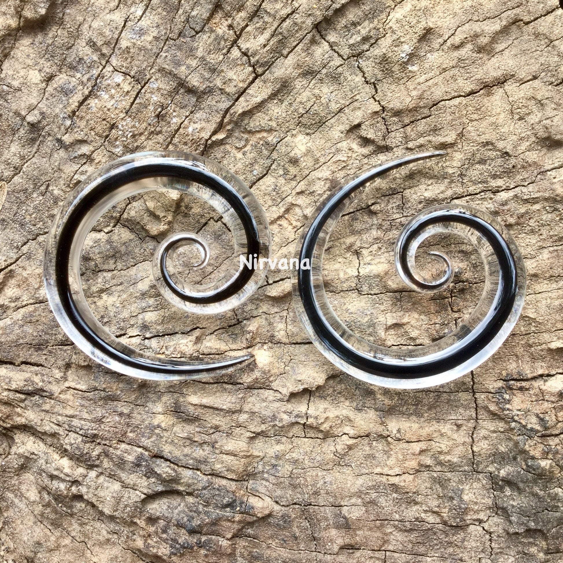 ITEM: This sale is for 1 pair (2 pieces) of hand made pyrex Encased Black Super Spirals.