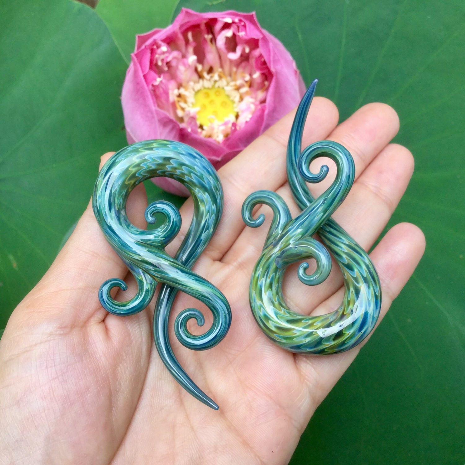 And of course if the photo listings are usually for a larger size please also understand that a smaller size ordered will look different too. This is important as you can't expect a 10g (2.5 mm) spirals to show as much color, design & pattern as a 0g (8 mm) or even 00g (10 mm) spirals. As 10g (2.5 mm) is only the size of about a strand of spaghetti pasta. Especially with the Dichroic colors or multi color requests they just won't work well in very small sizes as there's not enough space to put the colors in or for showing clearly.