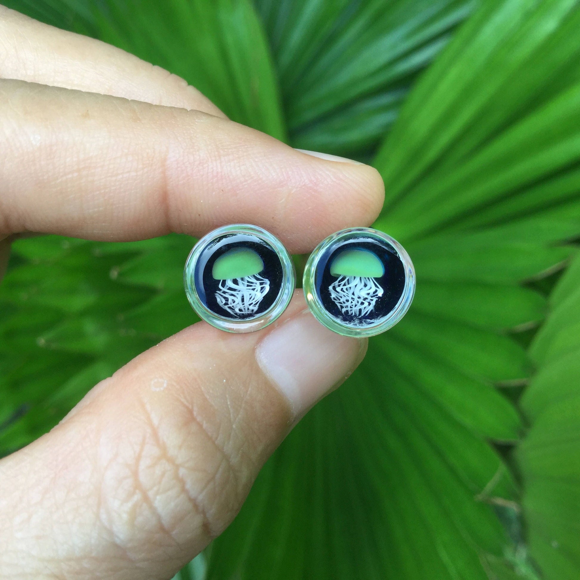 1 Pair (2 Pieces) Jade Pyrex Glass Jellyfish Plugs Cobalt Background