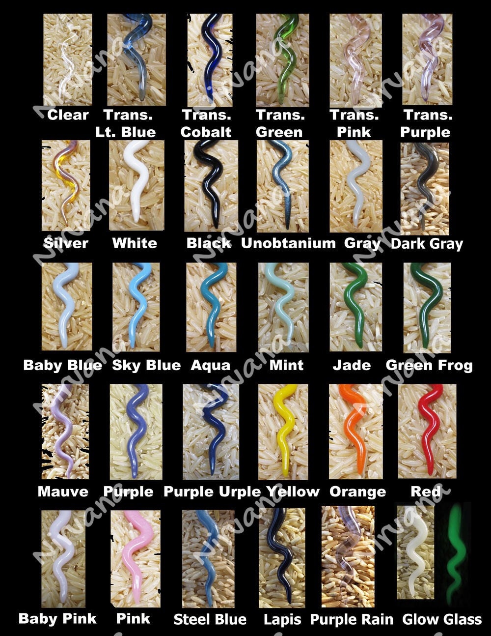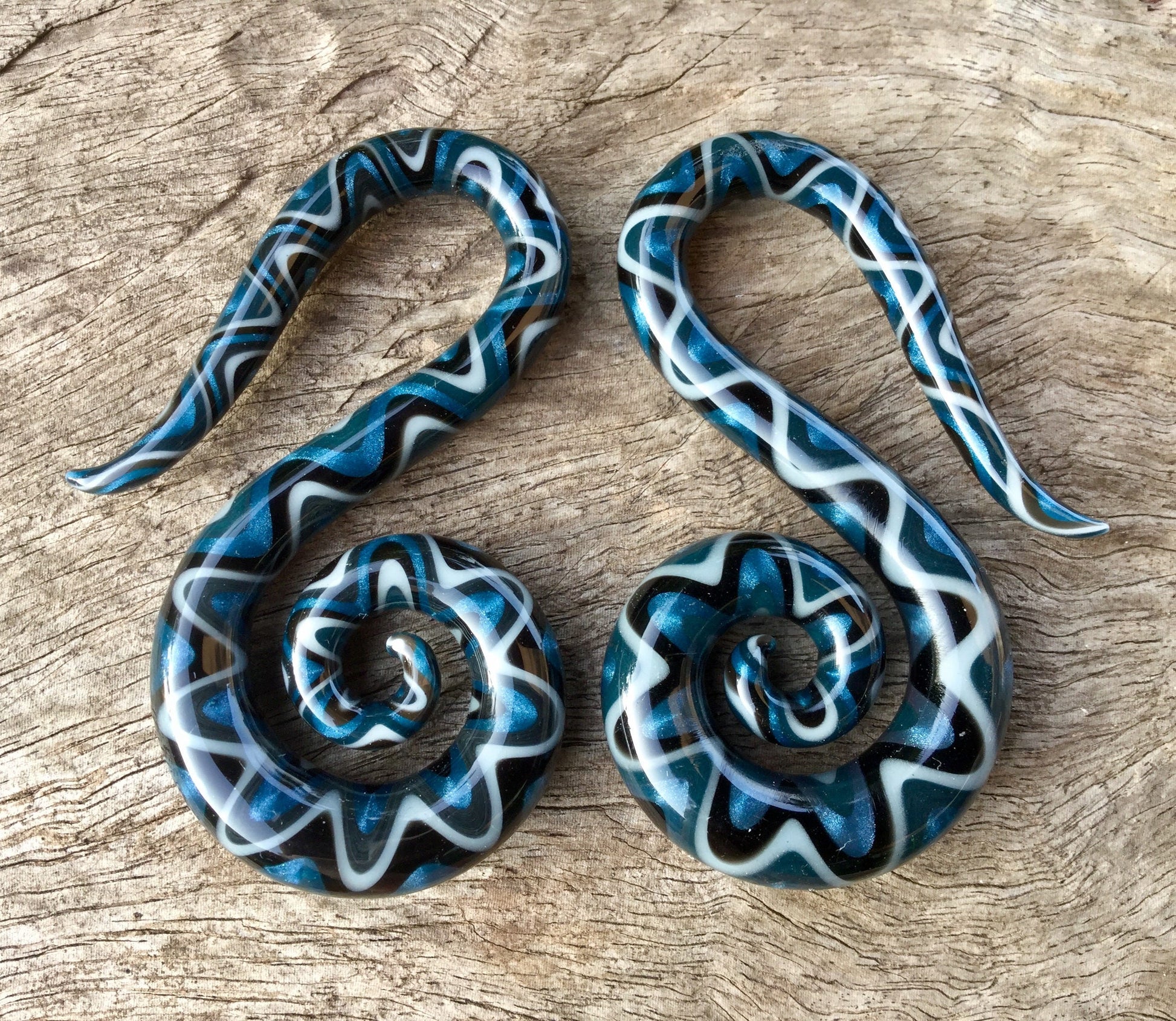 And of course if the photo listings are usually for a larger size please also understand that a smaller size ordered will look different too. This is important as you can't expect a 10g (2.5 mm) spirals to show as much color, design & pattern as a 0g (8 mm) or even 00g (10 mm) spirals. As 10g (2.5 mm) is only the size of about a strand of spaghetti pasta. Especially with the Dichroic colors or multi color requests they just won't work well in very small sizes as there's not enough space to put the colors in or for showing clearly.