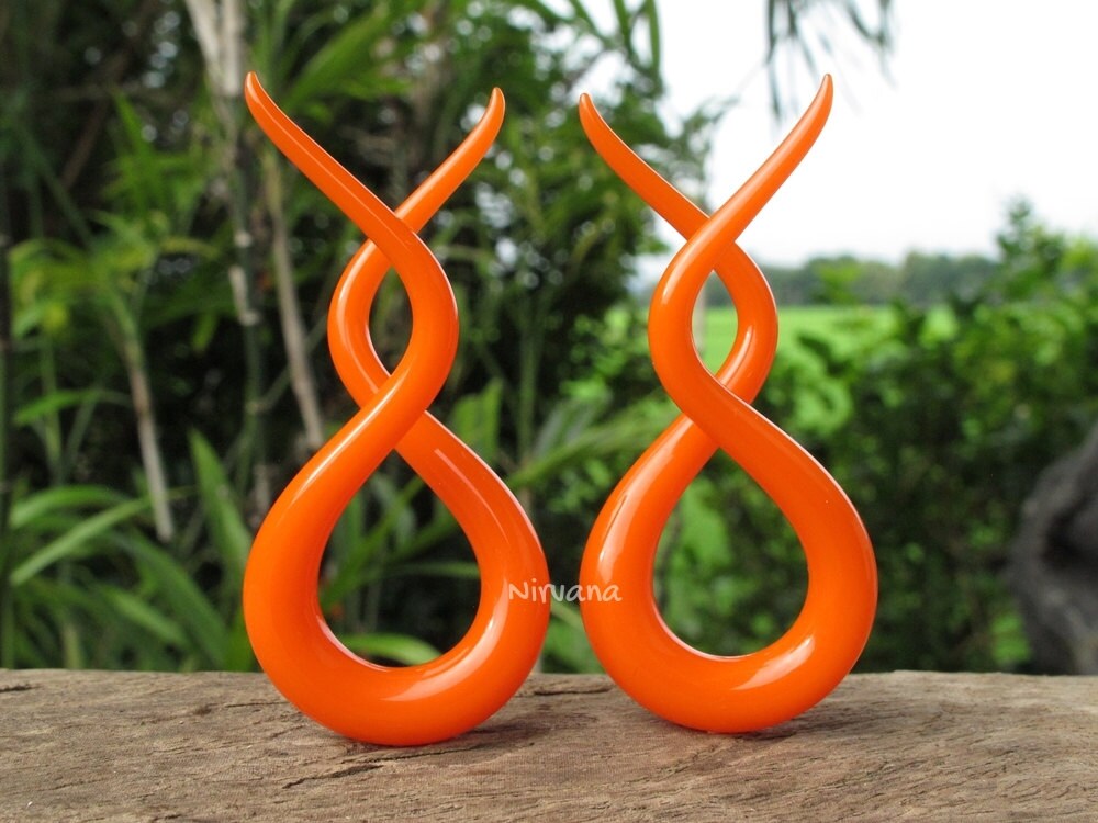 ITEM: This sale is for 1 pair (2 pieces) of hand made pyrex glass Orange Double Twists.