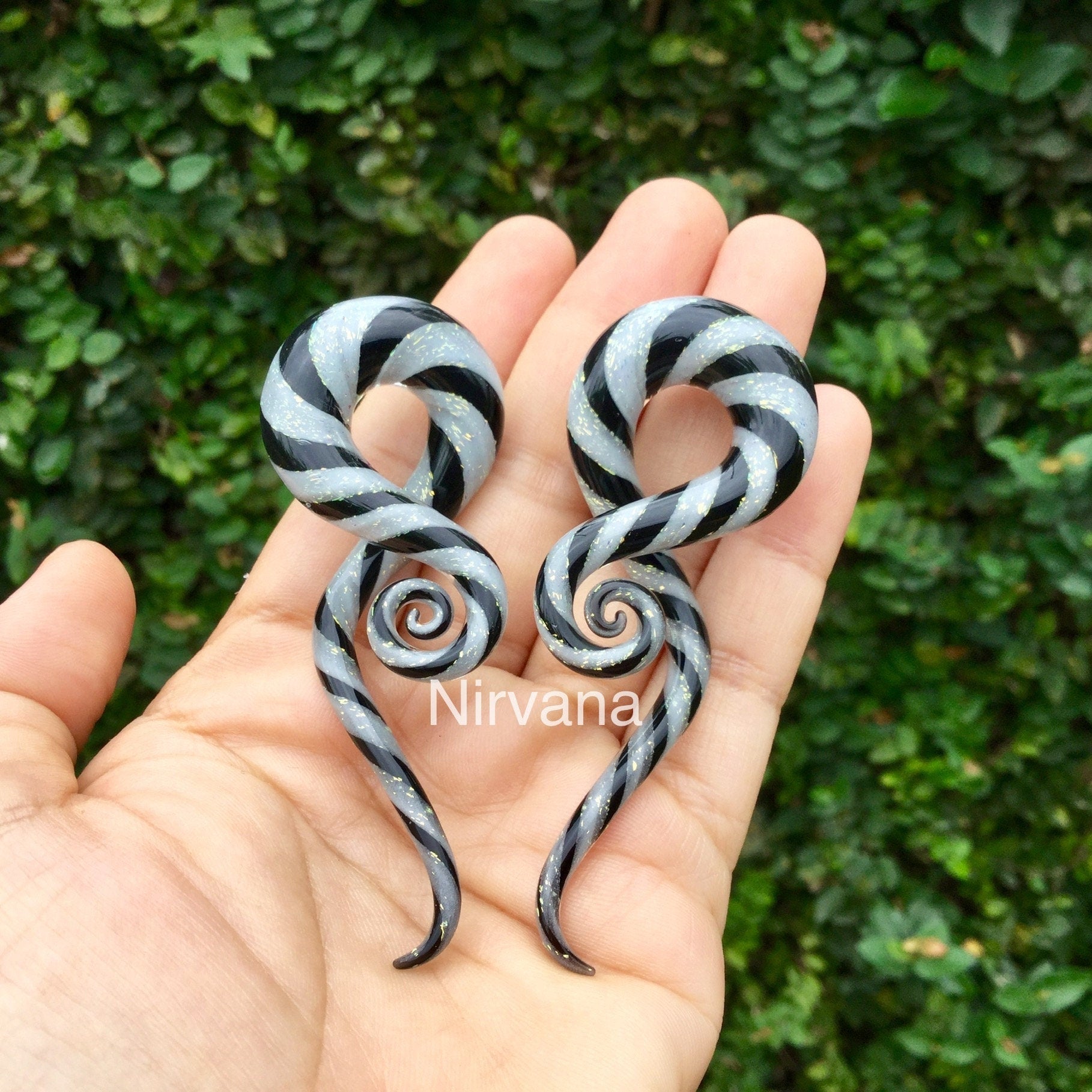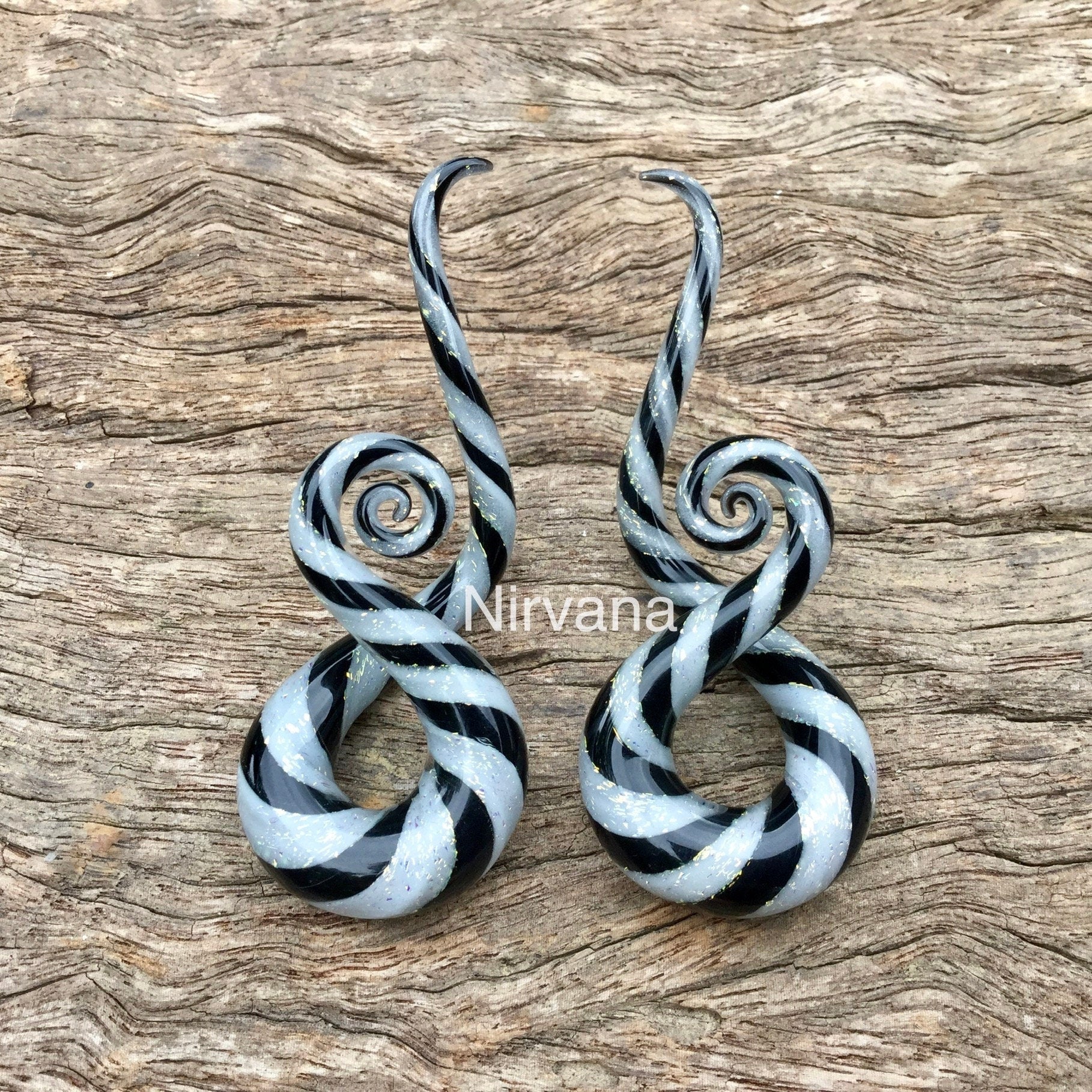 And of course if the photo listings are usually for a larger size please also understand that a smaller size ordered will look different too. This is important as you can't expect a 10g (2.5 mm) spirals to show as much color, design & pattern as a 0g (8 mm) or even 00g (10 mm) spirals. As 10g (2.5 mm) is only the size of about a strand of spaghetti pasta. Especially with the Dichroic colors or multi color requests they just won't work well in very small sizes as there's not enough space to put the colors in or for showing clearly.