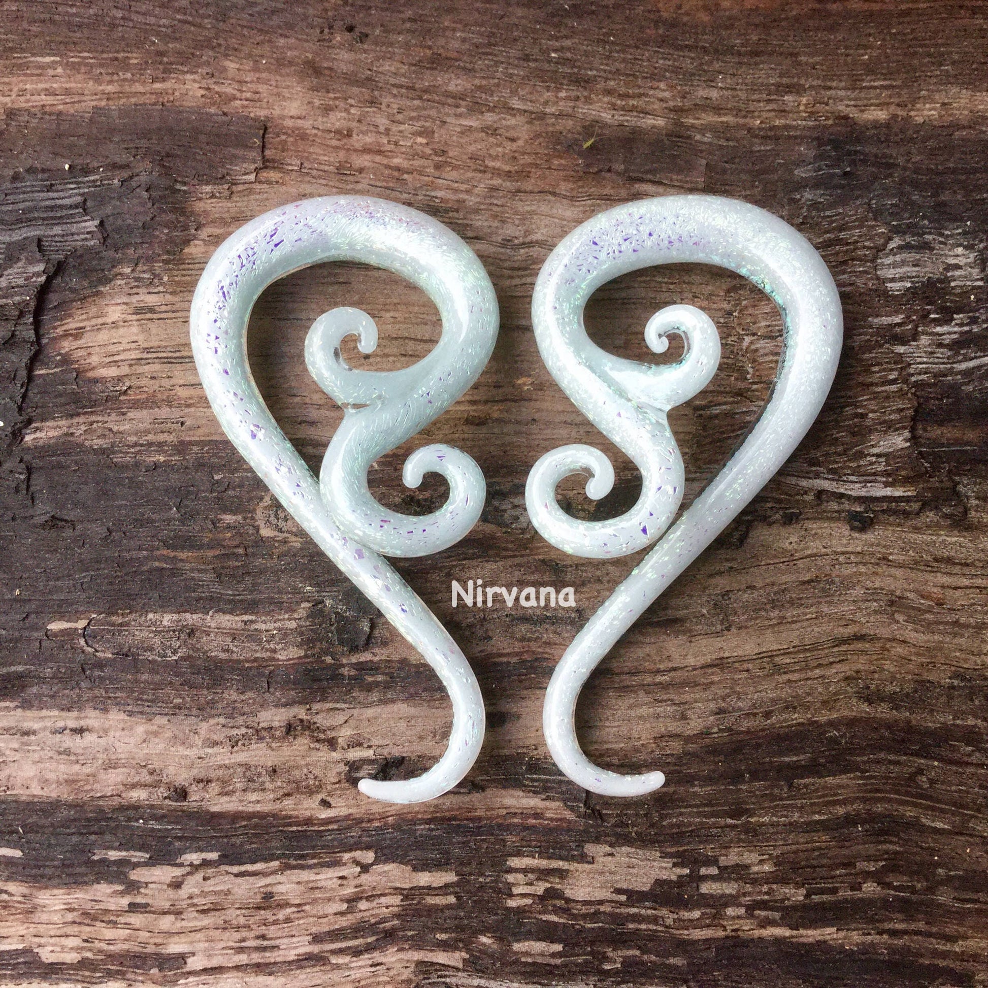 And of course if the photo listings are usually for a larger size please also understand that a smaller size ordered will look different too. This is important as you can't expect a 10g (2.5 mm) spirals to show as much color, design & pattern as a 0g (8 mm) or even 00g (10 mm) spirals. As 10g (2.5 mm) is only the size of about a strand of spaghetti pasta. Especially with the Dichroic colors or multi color requests they just won't work well in very small sizes as there's not enough space to put the colors in or for showing clearly.