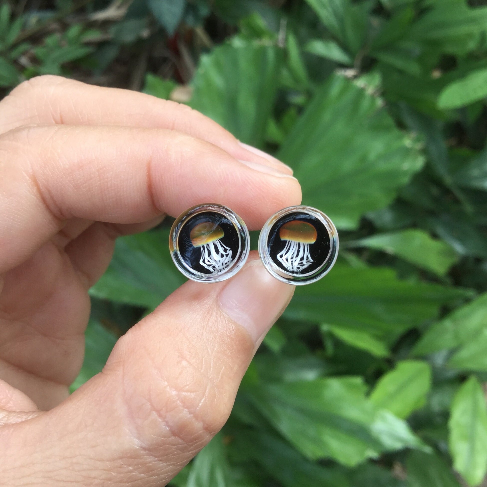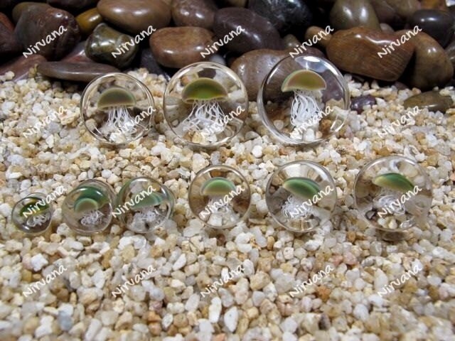 ITEM: This sale is for 1 pair (2 pieces) of hand made pyrex Classic Color Jellyfish Plugs with Black Background.