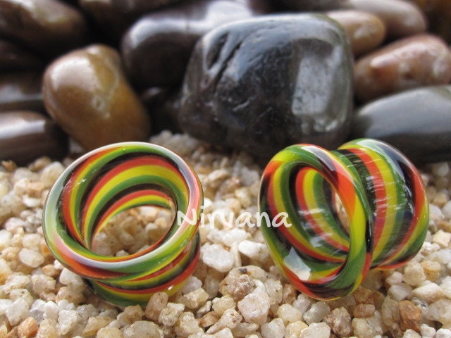 ITEM: This sale is for 1 pair (2 pieces) of hand made Glass Rasta Tunnels in the Twist Style Pattern.