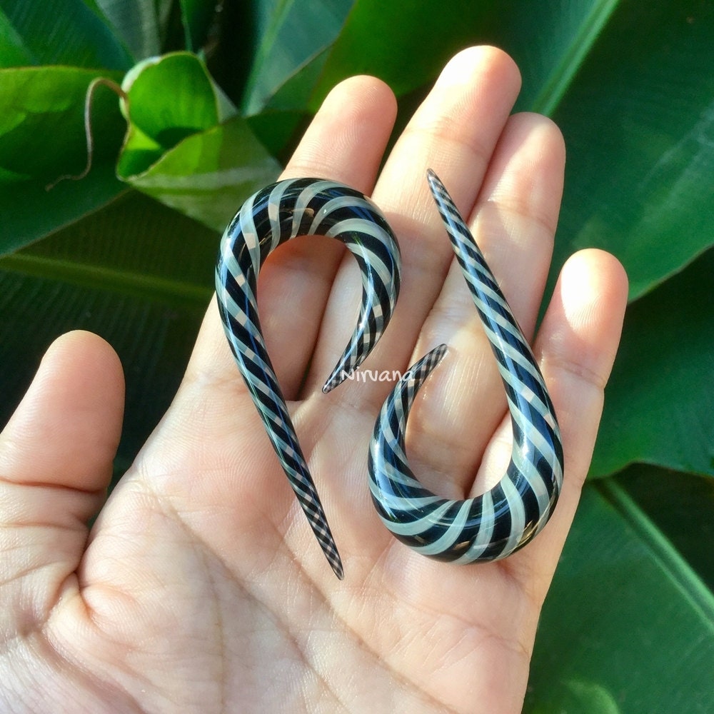 And of course if the photo listings are usually for a larger size please also understand that a smaller size ordered will look different too. This is important as you can't expect a 10g (2.5 mm) spirals to show as much color, design & pattern as a 0g (8 mm) or even 00g (10 mm) spirals. As 10g (2.5 mm) is only the size of about a strand of spaghetti pasta. Especially with the Dichroic colors or multi color requests they just won't work well in very small sizes as there's not enough space to put the colors in or for showing clearly.