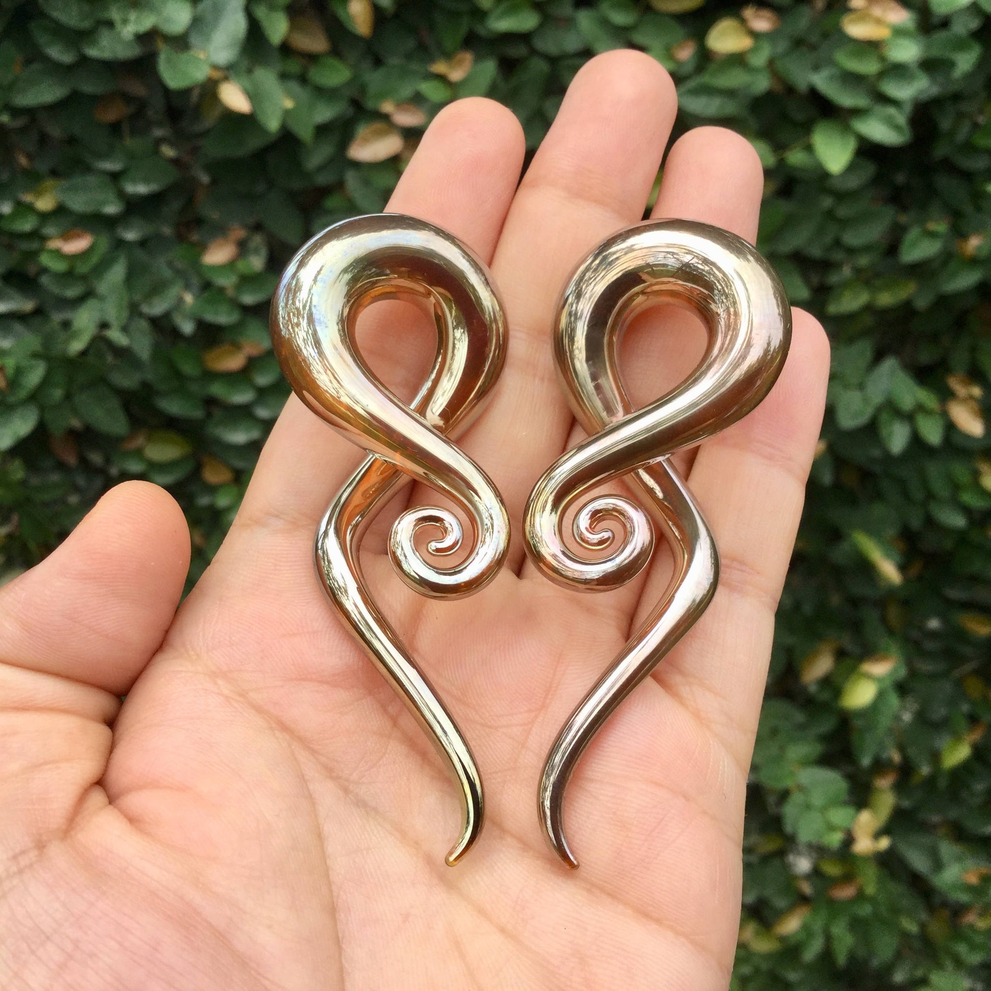 And of course if the photo listings are usually for a larger size please also understand that a smaller size ordered will look different too. This is important as you can't expect a 10g (2.5 mm) spirals to show as much color, design & pattern as a 0g (8 mm) or even 00g (10 mm) spirals. As 10g (2.5 mm) is only the size of about a strand of spaghetti pasta. Especially with the Dichroic colors or multi color requests they just won't work well in very small sizes as there's not enough space to put the colors in or for showing clearly.