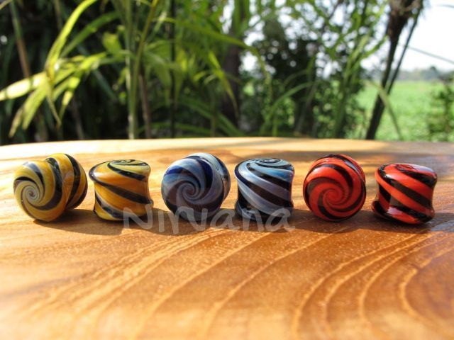 ITEM: This sale is for 1 pair (2 pieces) of hand made Pyrex Glass Candy Spiral Twist Plugs in Red & Black Stripes.