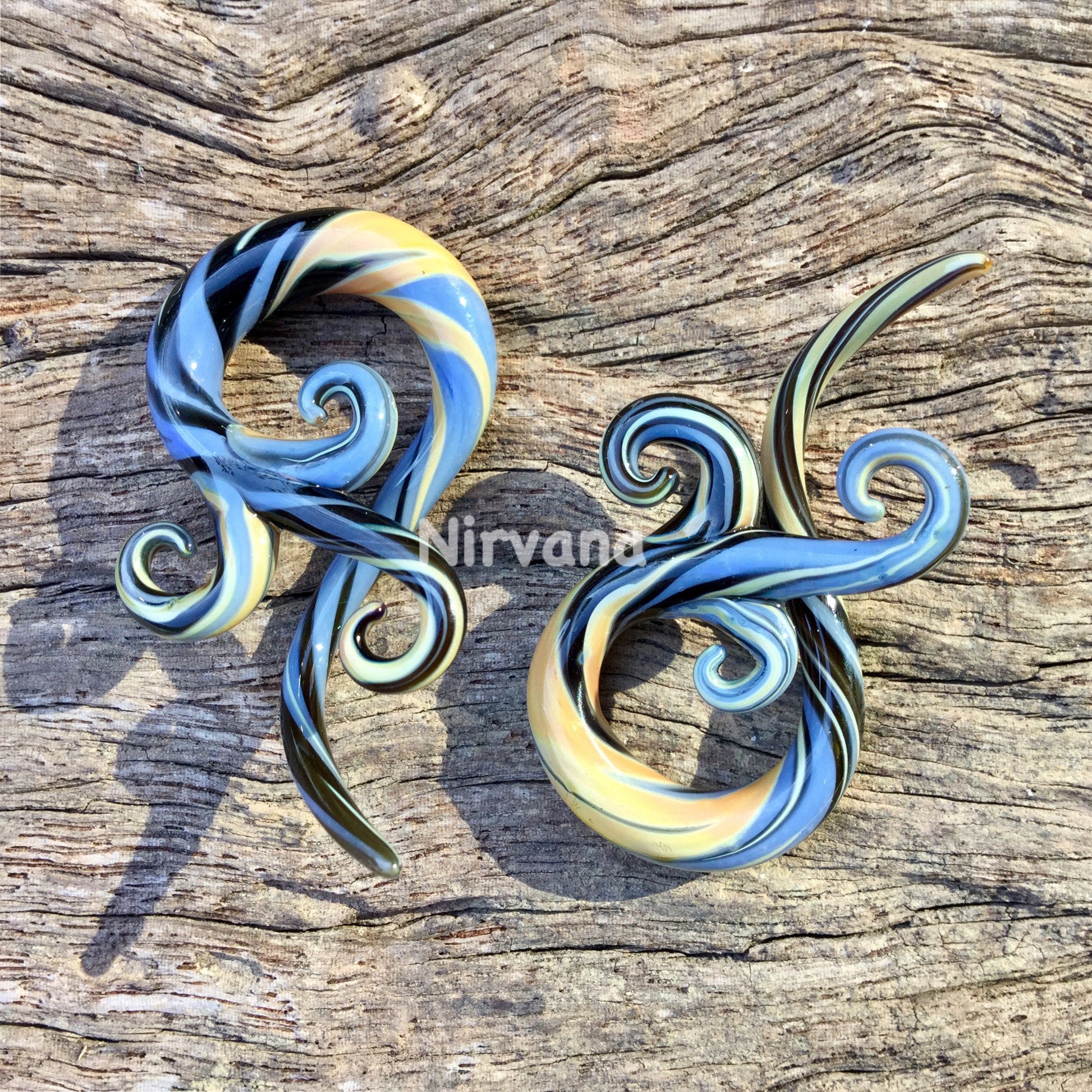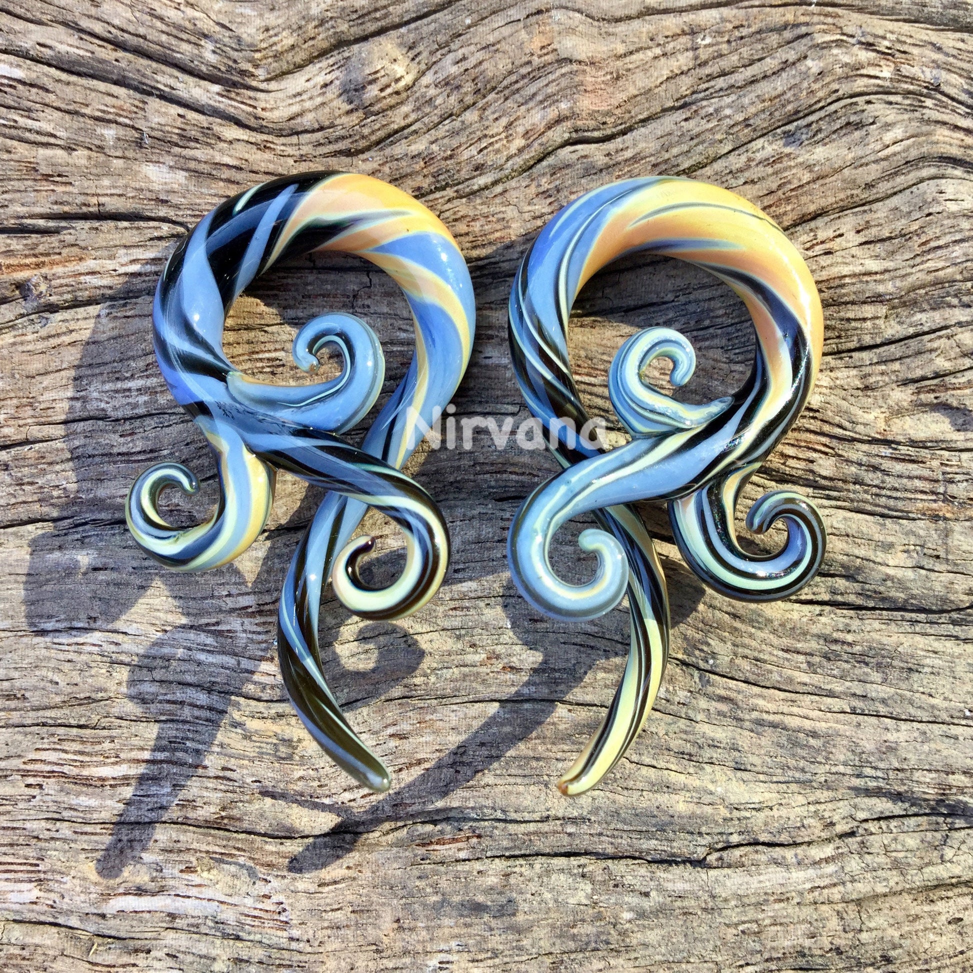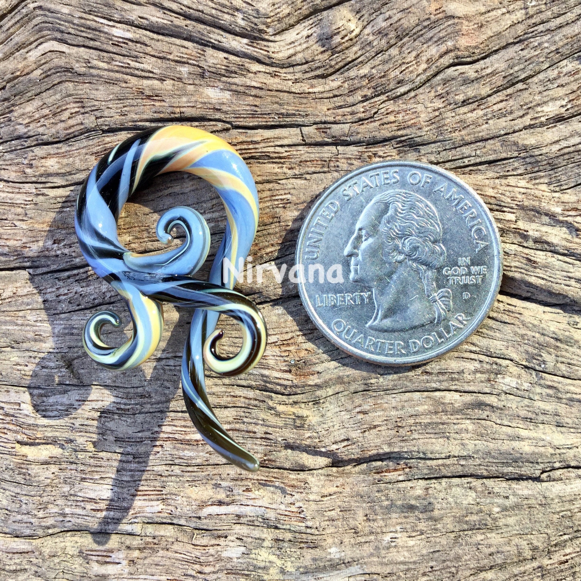 And of course if the photo listings are usually for a larger size please also understand that a smaller size ordered will look different too. This is important as you can't expect a 10g (2.5 mm) spirals to show as much color, design & pattern as a 0g (8 mm) or even 00g (10 mm) spirals. As 10g (2.5 mm) is only the size of about a strand of spaghetti pasta. Especially with the Dichroic colors or multi color requests they just won't work well in very small sizes as there's not enough space to put the colors in or for showing clearly.