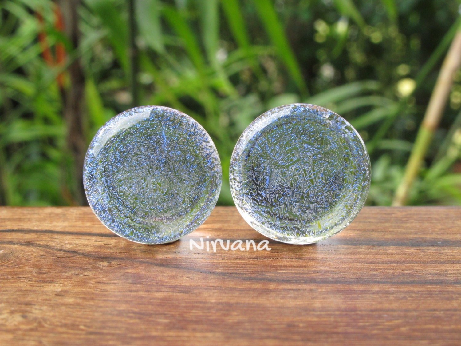 ITEM: This sale is for 1 pair (2 pieces) of hand made Pyrex Glass Translucent Cobalt Blue Dichroic Plugs with no color backing.