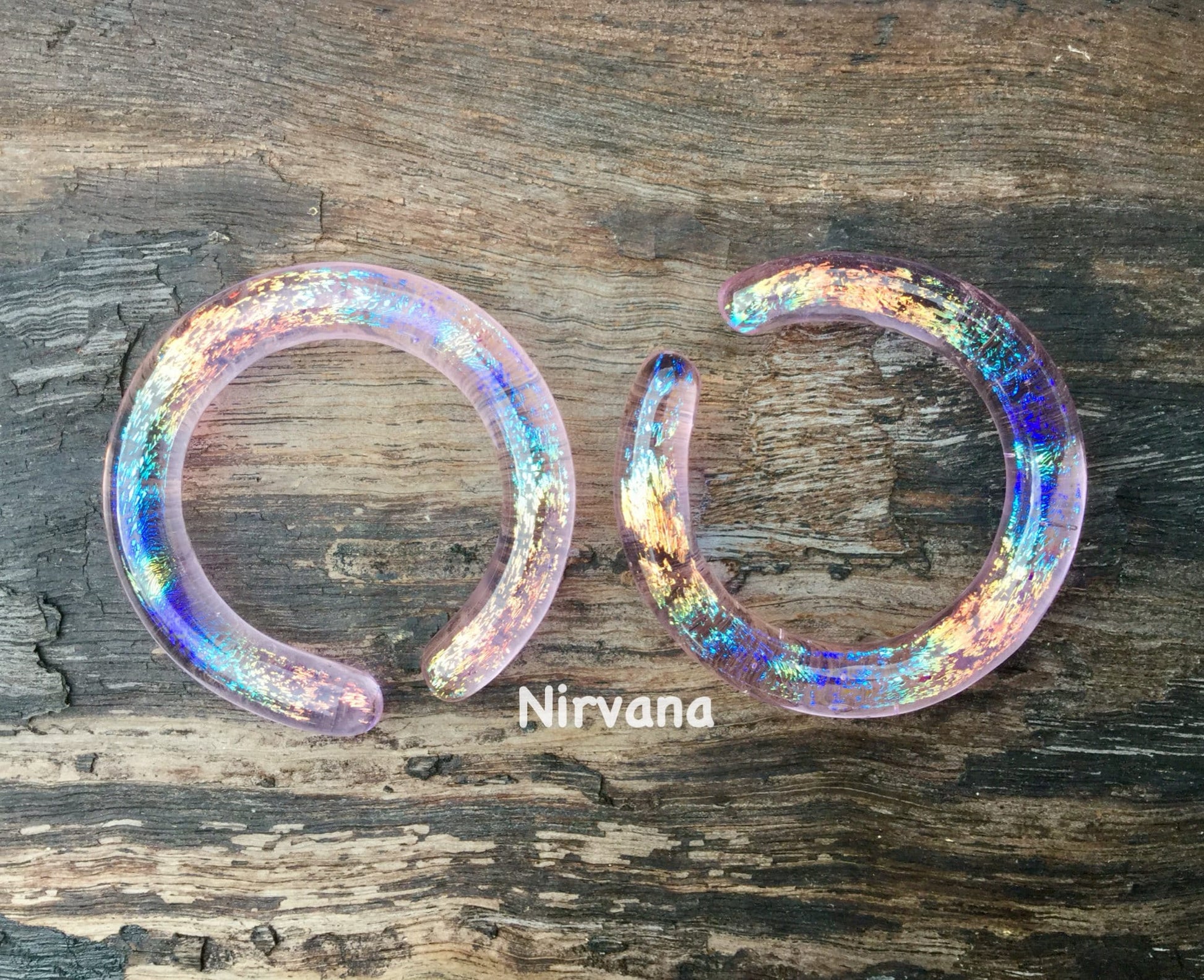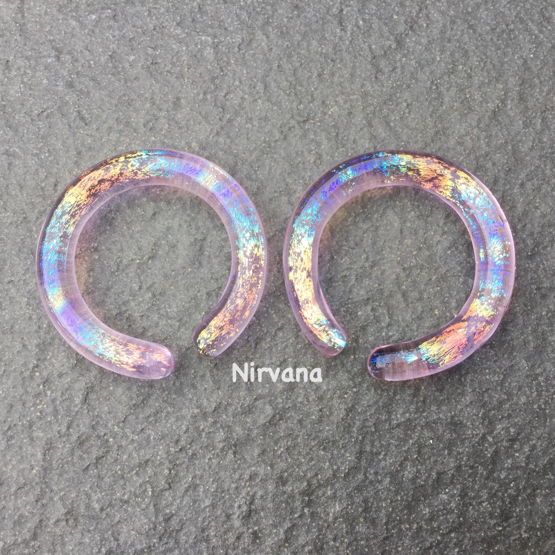 ITEM: This sale is for 1 pair (2 pieces) of hand made pyrex Translucent Aquatic Rainbow Dichroic Translucent Pink Nirvana Hoops.