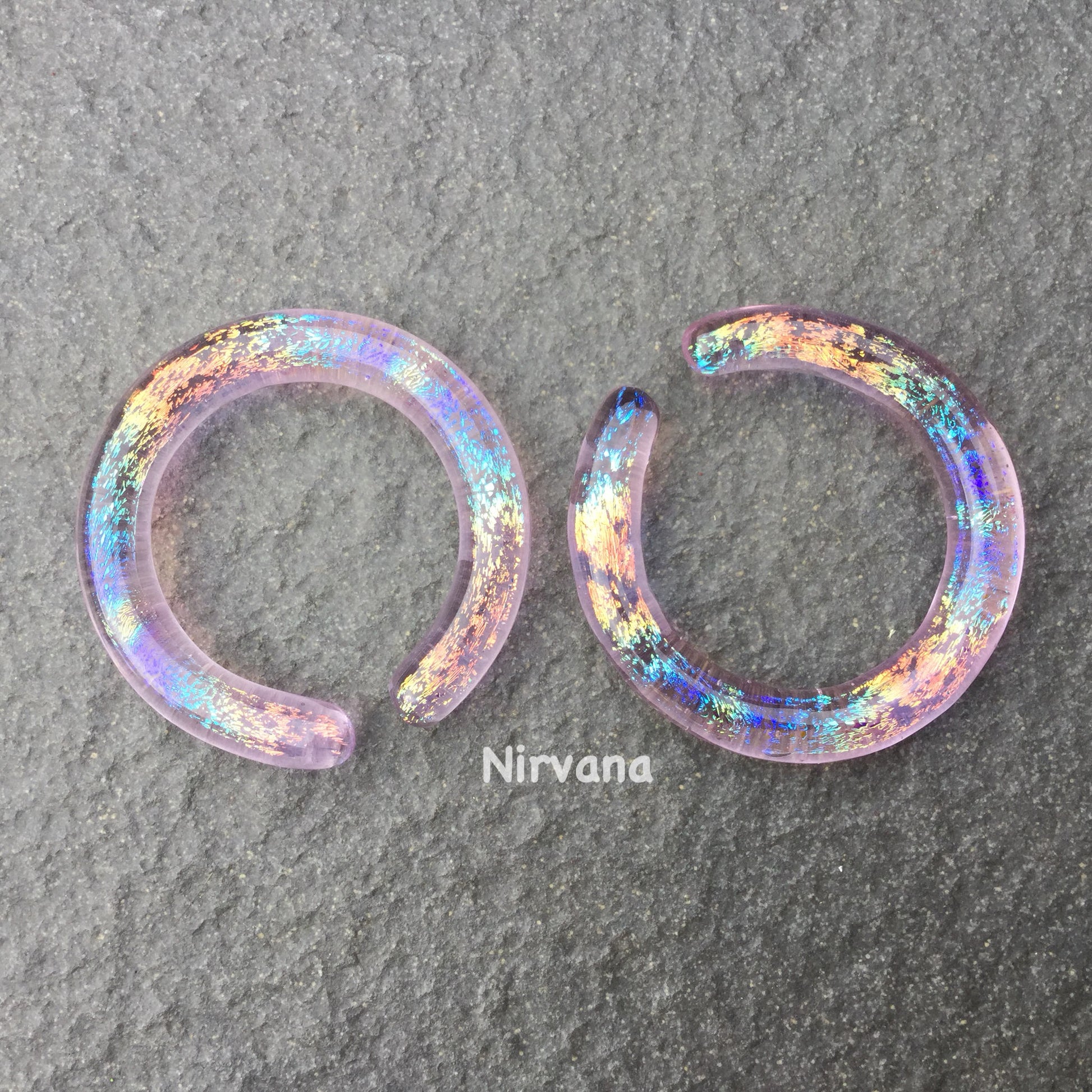 1 Pair (2 Pieces) Translucent Rainbow Dichroic Translucent Pink Glass Hoops