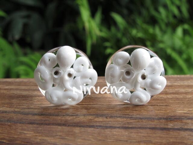 1 Pair (2 Pieces) White Octopus Plugs Pyrex Glass