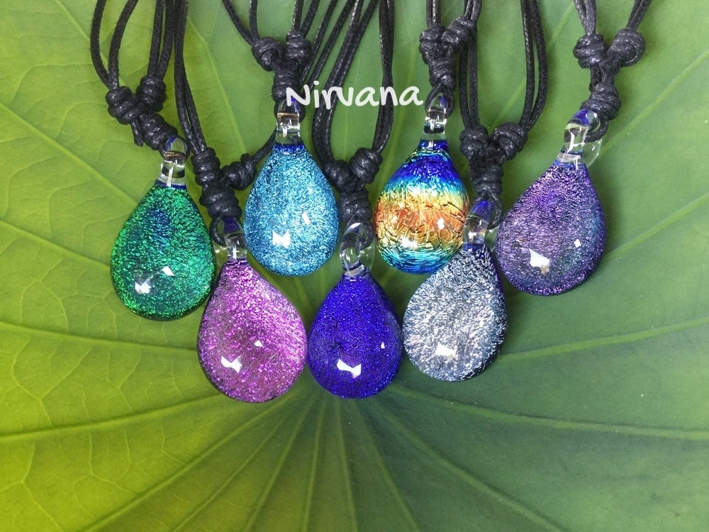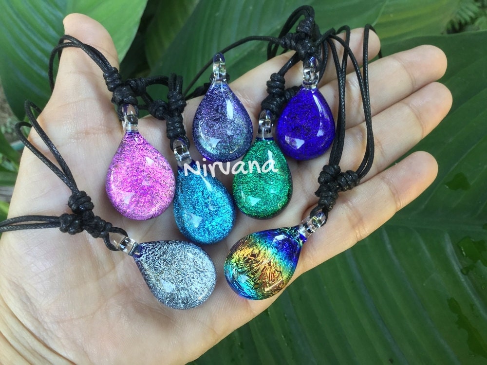 1 Piece - Dichroic Tear Drop Pendants With Adjustable Black Cord