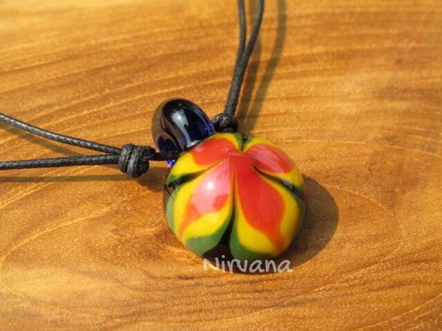 ITEM: This sale is for 1 piece of a hand made Groovy Rainbow Color Flower Pendant in Pyrex Glass.